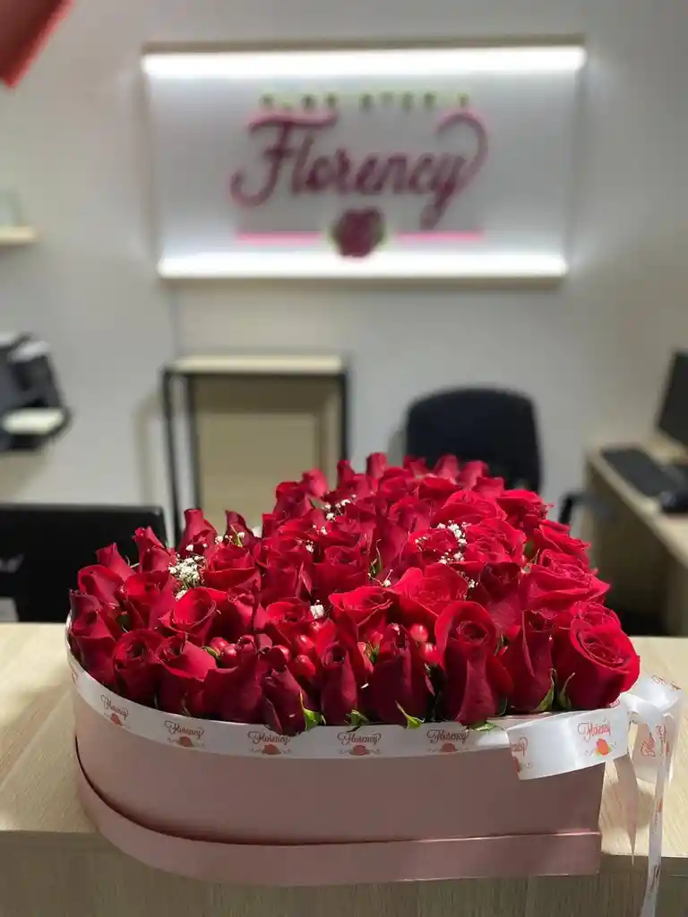 CAJA CORAZON GRANDE ROSAS SU COLOR DE EMPAQUE PUEDE VARIAR SU COLOR DE FLORES PUEDE VARIAR