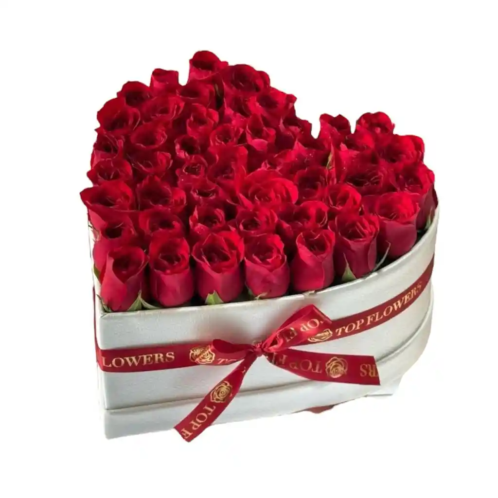 Elegante diseño en base cilíndrica mediana compuesto por 30 rosas rojas frescas, acompañadas de soliaster y follaje verde natural. Un arreglo sofisticado y romántico, ideal para sorprender con un detalle impactante y lleno de pasión.