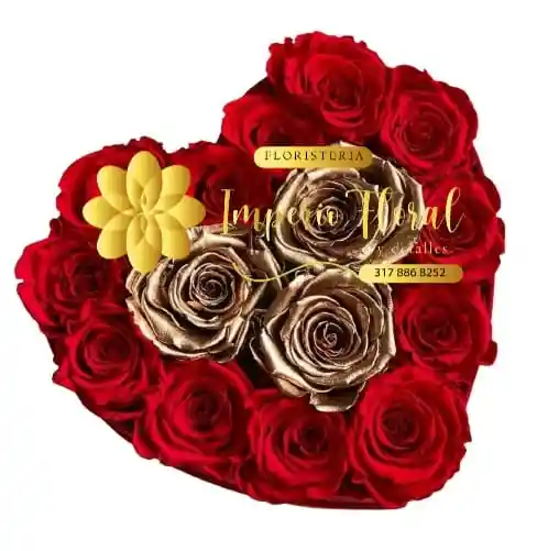 Corazón de lujo x 15 rosas de exportación y tarjeta mensaje.