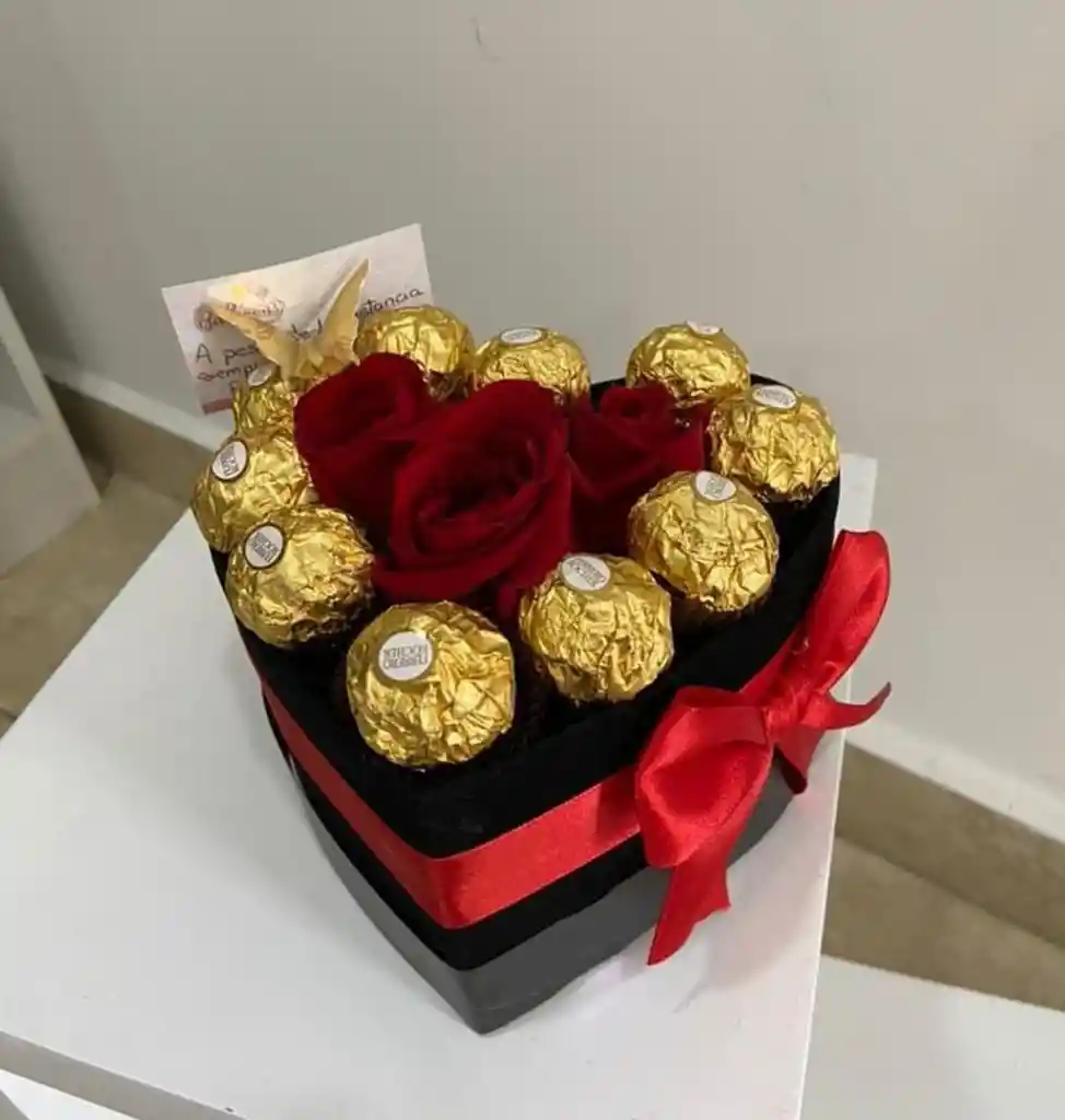 Hermoso corazon para sorprender x 3 rosas y 10 chocolates + tarjeta mensaje.