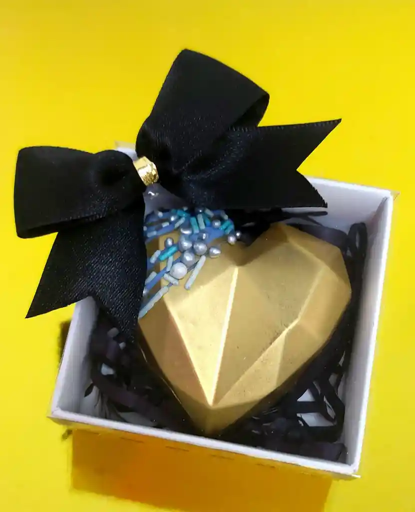 Haz tus momentos más especiales, incluyendo en ellos rico chocolate. Contiene: Corazón elaborado en chocolate blanco con colorantes alimenticios Relleno: Brownie Caja decorada Tarjeta según ocasión Recomendaciones: Favor comunicarse con el Whatsapp: 3102078219 cuando vayas a realizar la compra para ultimar detalles.