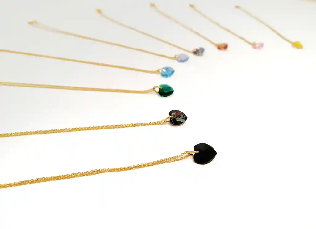 Cadenita de 40 cm con cristal Swarovski Colores: Rosado, Azul claro, Negro cristal, Pastel, Rojo, Cleo,