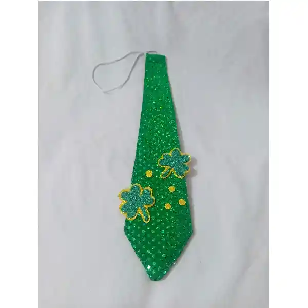 Corbata de tela con brilos y trebol verde del Día de San Patricio / St Patrick