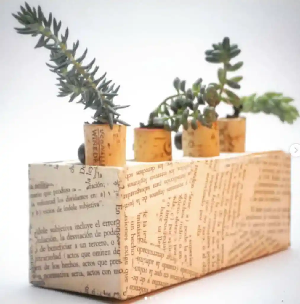 son corchos de vino con una suculenta cada uno, traen iman para ponerlo en superficies metalicas