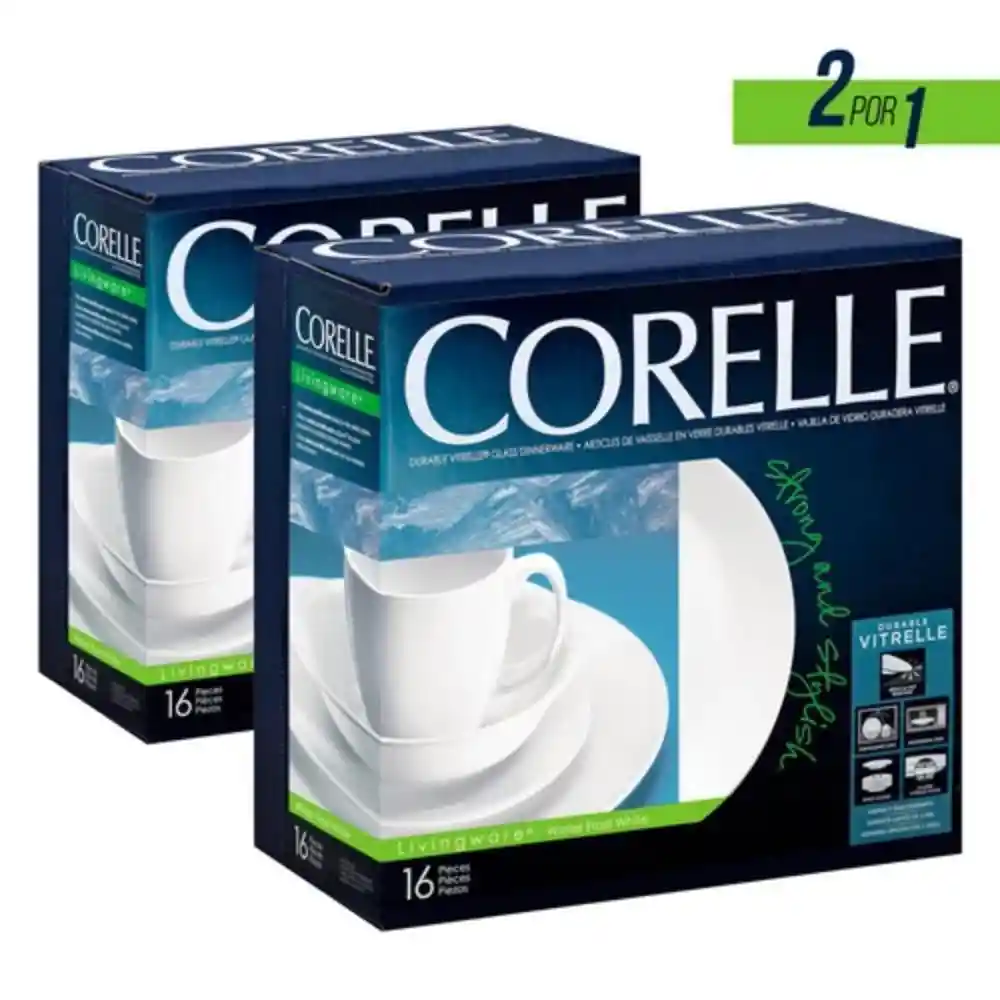 Corelle Vajilla de 16 Piezas X 2 Winter Frost Brillante, Clásico y Fresco. Este Modelo de Vajilla es Versátil y Atemporal.