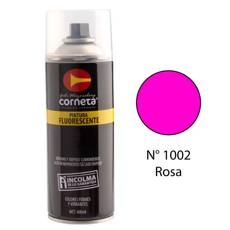 Color: Rosado Fluorescente. Pintura acrílica en aerosol ideal para superficies de madera, metal, paredes, cerámica o cartón que deban ser restauradas, protegidas y/o decoradas. Alto cubrimiento, alto rendimiento. Para uso en interiores y exteriores .