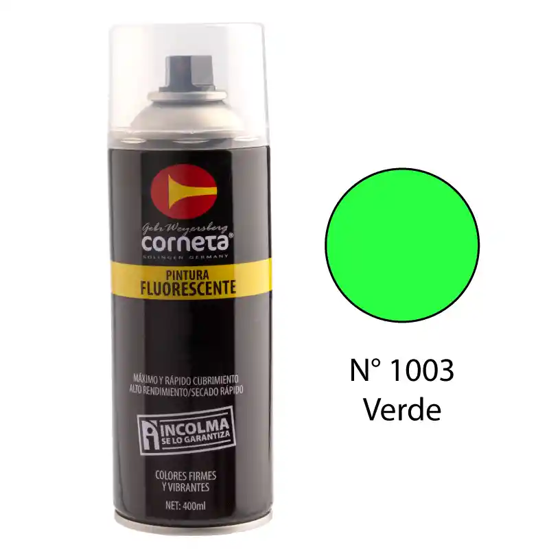 Color: Verde fluorescente , pintura acrílica en aerosol para superficies de madera, metal, paredes cerámica o cartón que deban ser restaurados, protegidas y/o decorados. Alto cubrimiento, alto rendimiento, secado ultra rápido. Para interiores y exteriores.