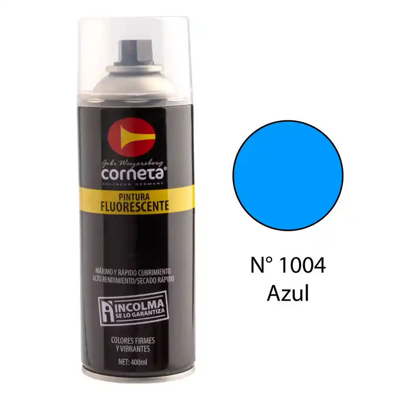 Color: Azul Fluorescente. Pintura acrílica en aerosol ideal para superficies de madera, metal, paredes, cerámica o cartón que deban ser restauradas, protegidas y/o decoradas. Alto cubrimiento, alto rendimiento. Para uso en interiores y exteriores.
