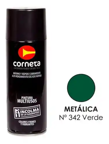 Pintura en aerosol acabado metálico color verde. Marca Corneta. Contenido. 400 ml