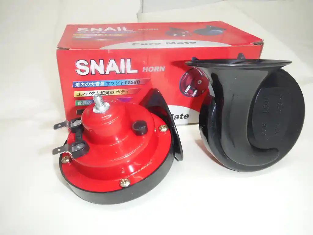 Somos Almacen Durancars Lujos y Accesorios para su vehiculo Cornetas - Pitos caracol 115dB 12 Voltios Incluye dos cornetas rojas con negro tono alto: 510 Hz, tono bajo:410 Hz Nivel de sonido: 115dB Incluye platinas y tornillos que facilitan la instalacion Funcionan a 12 Voltios Aplica para carro o moto Se entregan con factura legal y garantia de 30 dias por defectos de fabricacion
