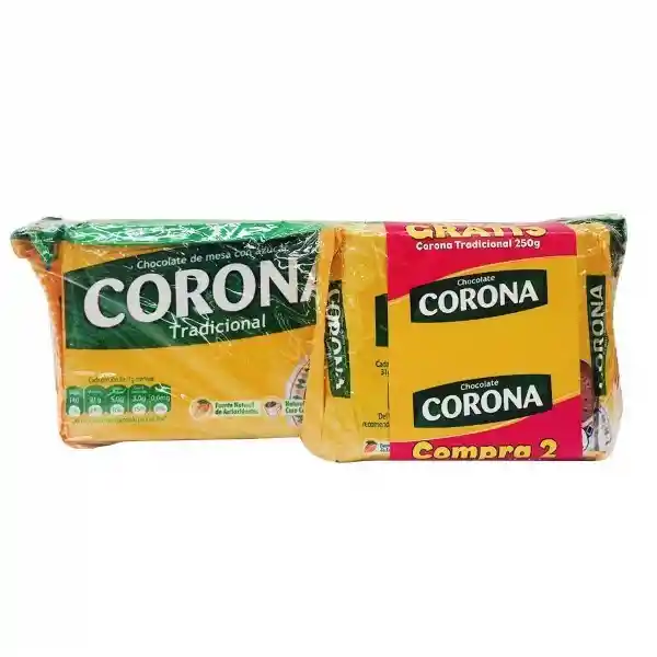 Contiene 16 Unidades. Corona Chocolate 500 g + Corona Chocolate 250 g Grátis.