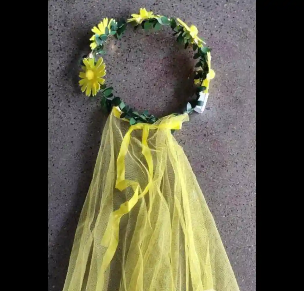 CORONA DE GIRASOLES PARA NIÑA Y ADULTA PARA HALLOWEEN CON LUCES MULTICOLOR