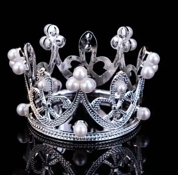 Corona De Perlas Plastica Pequeña Plateada x 1 Unidad