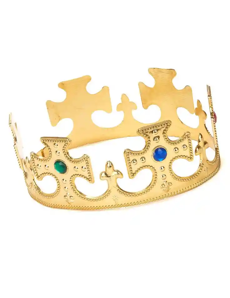 CORONA DE REY HOMBRE COLOR DORADA CON DETALLES DE BRILLOS DE COLORES