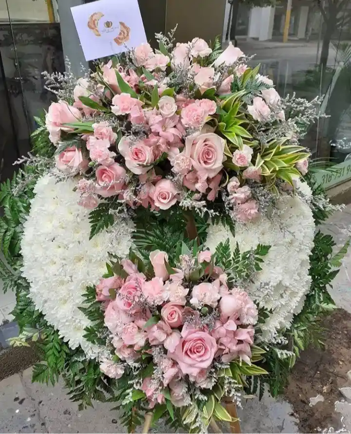 Exprese sus más sinceras condolencias enviando esta hermosa corona fúnebre elaborada por Flor de Helena, con rosas frescas, helecho cuero, astromelias, canción de la india, caspia, pompones. Incluye Tarjeta. Nota: La cinta fúnebre tiene un valor adicional de $20.000 COP