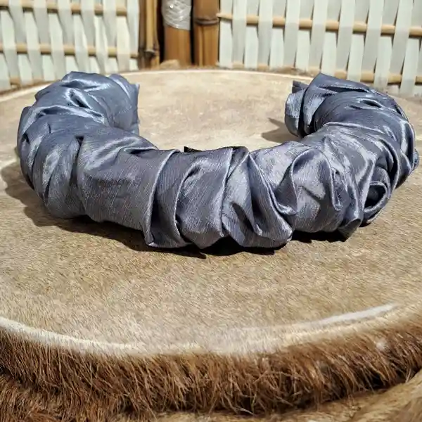 Es una diadema flexible como base, forrada y decorada en su alrededor con textil recuperado dándole una forma abullonada intencionalmente y creando firmeza con puntadas a mano. Upcycling: Nuestros productos son únicos ya que reutilizamos textiles para mitigar un poco más la carga de la industria de la moda. Beneficios: Son piezas que no aprietan, no tallan ni molestan. Horman la cabeza para mayor ajuste. Nuestras joyas crean un efecto de empoderamiento y belleza a la hora de colocárselos. Manejamos textiles de excelente calidad Garantía: Nuestros productos tienen 6 meses de garantía (No se devuelve dinero, solo se cambia por un producto de la misma referencia o del mismo valor, en caso de no tener el mismo valor y superarlo, el cliente tiene que asumir y pagar el excedente). Lavado Estos son piezas que no se pueden meter en lavadoras ni secadoras. Se limpia con un pañito semi húmedo y con Frotex como jabón para desmanchar No aplicarle ni químicos, Clorox, Varsol, entre otros productos. Dejar secar al clima Recomendaciones: Para evitar que tu producto corra el riesgo de mancharse o dañarse por algún líquido, recomendamos guardar en su mismo empaque después del uso. Se puede utilizar con todo tipo de ropa, tanto monocromático como contrastado. Se usa un poco más adelante de la mitad de la cabeza Se puede usar sobre el cabello o recogiéndolo (Esto va a gusto de la persona) La diadema va detrás de las orejas. Se puede usar en el diario, trabajo, vacaciones o para eventos especiales (Esto va a gusto de la persona)