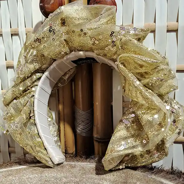 Es una diadema flexible como base, forrada y decorada en su alrededor con textil recuperado dándole una forma abullonada intencionalmente y creando firmeza con puntadas a mano. Inspiración: Esta joya está inspirada en los atuendos/indumentaria de nuestras matronas palenqueras, recreando las arandelas de sus polleras Upcycling: Nuestros productos son únicos ya que reutilizamos textiles para mitigar un poco más la carga de la industria de la moda. Beneficios: Son piezas que no aprietan, no tallan ni molestan. Horman la cabeza para mayor ajuste. Nuestras joyas crean un efecto de empoderamiento y belleza a la hora de colocárselos. Manejamos textiles de excelente calidad Garantía: Nuestros productos tienen 6 meses de garantía (No se devuelve dinero, solo se cambia por un producto de la misma referencia o del mismo valor, en caso de no tener el mismo valor y superarlo, el cliente tiene que asumir y pagar el excedente). Lavado: Estos son piezas que no se pueden meter en lavadoras ni secadoras. Se limpia con un pañito semi húmedo y con Frotex como jabón para desmanchar No aplicarle ni químicos, Clorox, Varsol, entre otros productos. Dejar secar al clima Recomendaciones: Para evitar que tu producto corra el riesgo de mancharse o dañarse por algún líquido, recomendamos guardar en su mismo empaque después del uso. Se puede utilizar con todo tipo de ropa, tanto monocromático como contrastado. Se usa un poco más adelante de la mitad de la cabeza Se puede usar sobre el cabello o recogiéndolo (Esto va a gusto de la persona) La diadema va detrás de las orejas. Se puede usar en el diario, trabajo, vacaciones o para eventos especiales (Esto va a gusto de la persona)