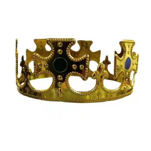 CORONA PLASTICA COLOR DORADA PARA REY. (NOTA LAS JOYAS ESTAN PINTADAS, NO SON PIEDRAS)