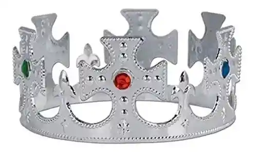 Corona Rey Flexible Ajustable Plateada Y Piedras Hora Loca Carnaval Halloween. Medidas. 52 cm largo X 7 cm alto