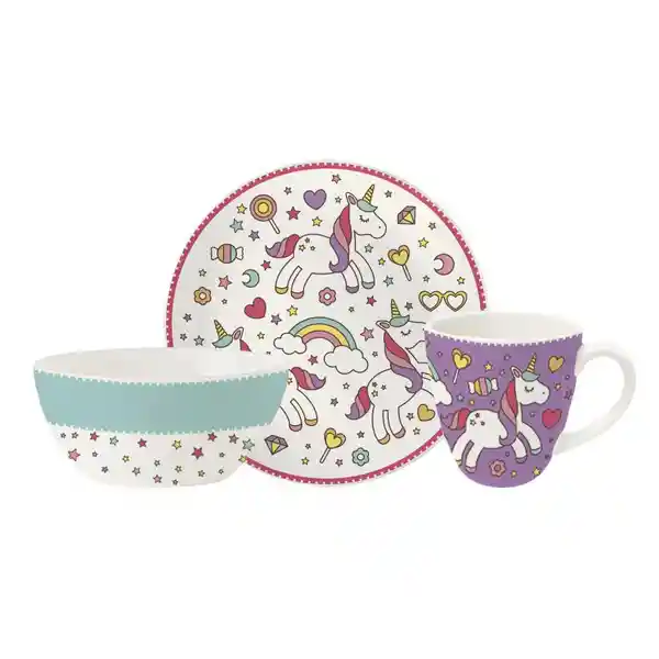 Set Corona Contiene 3 Unidades. Plato 1 Und + Bowl 1 Und + Pocillo 1 Und.