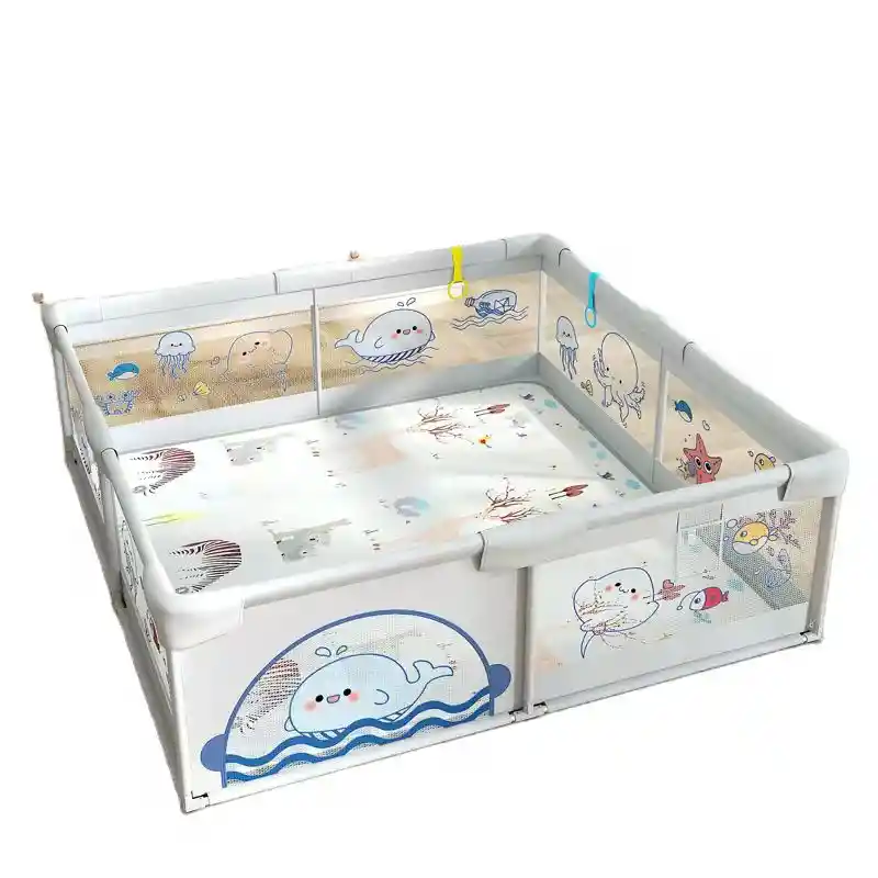 Corral de juegos infantil con diseño mundo marino en color gris, ideal para crear un espacio seguro y cómodo donde los niños puedan jugar y explorar libremente. Sus dimensiones de 2 m x 180 cm brindan un área amplia que favorece el movimiento, la actividad física y el desarrollo motor. Cuenta con una estructura estable que proporciona seguridad durante el uso, siendo adecuado para interiores y superficies planas. Su diseño envolvente permite delimitar el área de juego, ofreciendo mayor tranquilidad durante su uso. Fabricado con materiales resistentes, es fácil de armar, desmontar y limpiar, lo que facilita su uso diario en el hogar. Características principales: Dimensiones amplias de 2 m x 180 cm Diseño mundo marino en color gris Estructura estable y segura Fácil de armar y desarmar Apto para uso en interiores Favorece el movimiento y el juego libre Producto ideal para brindar un espacio de juego seguro, práctico y funcional para los niños.