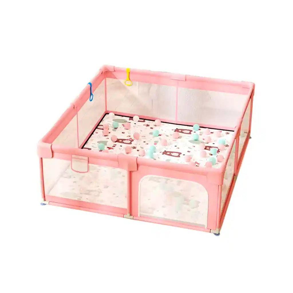 Corral de juegos y centro de actividades para bebés, del tamaño ideal para tu niñ@ desde los 6 meses hasta sus 5 años. Corral diseñado para cumplir con las necesidades del juego de tu bebé y las características de seguridad para tu tranquilidad. Características: El Corral de juegos y centro de actividades para bebés es la forma más divertida y segura de entretener a tu bebé. ¡Este Corral de juegos y centro de actividades para bebés te dará la total tranquilidad de que tu bebé está jugando felizmente en un entorno seguro y divertido! Todos los materiales del Corral de juegos y centro de actividades para bebés están libres de BPA y no son tóxicos. Los tubos de acero verticales y los tubos de la parte superior han sido envueltos con espuma. Los conectores de plástico de la parte superior se han envuelto con una tela gruesa. Todos estos están pensados para evitar cualquier posible daño al bebé. Es un espacio seguro que trae beneficios en su desarrollo, intervienen sentidos como la vista, el tacto y el oído que ayuda a los niños a potencializar y descubrir nuevas habilidades. Medidas: 150 cm x 180 cm
