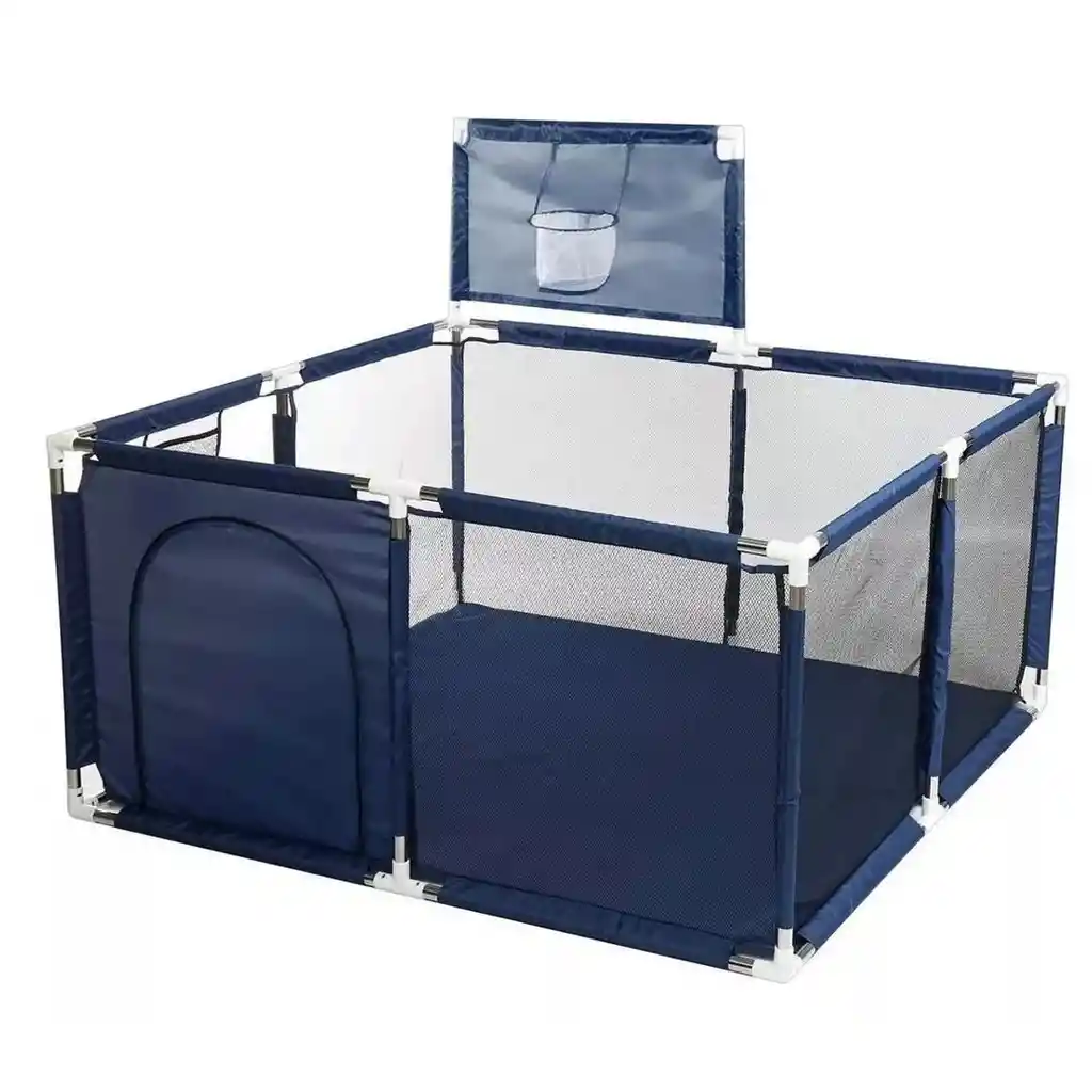 Brinda a tus pequeños un espacio seguro, cómodo y divertido con este práctico corral infantil. Diseñado para garantizar la tranquilidad de los padres y la diversión de los niños, este corral es ideal para jugar, explorar y descansar. Características Principales: Seguridad ante todo: Su estructura robusta combina acero inoxidable y plástico de alta calidad para asegurar estabilidad y durabilidad. Las esquinas redondeadas y materiales libres de bordes filosos minimizan riesgos de accidentes. Diseño funcional y ventilado: Las paredes laterales de malla transparente permiten una óptima circulación de aire, visibilidad total para los padres y una conexión constante con el entorno del niño. La entrada cuenta con un sistema de cierre seguro y fácil de usar para evitar salidas accidentales. Amplio y cómodo: Con medidas de 128 cm x 128 cm y una altura de 64 cm, ofrece un espacio amplio para que los niños jueguen, gateen o den sus primeros pasos. Además, incluye un aro de básquetbol integrado para añadir un elemento interactivo y divertido al juego. Portabilidad y practicidad: Ligero (2.91 kg) y fácil de ensamblar sin herramientas, este corral se adapta a interiores, exteriores o incluso viajes. También es fácil de desmontar para guardarlo o moverlo de un lugar a otro. Materiales fáciles de limpiar: La tela es completamente lavable, manteniéndose higiénica y lista para el uso diario. Especificaciones del Producto: Material de las paredes: Malla transpirable y resistente. Estructura: Tubos de acero inoxidable. Dimensiones: Altura de 64 cm x 128 cm x 128 cm. Peso: 2.91 kg. Edad recomendada: Desde los 3 meses hasta los 3 años. Color: Azul. Incluye: Aro de básquetbol para entretenimiento adicional. Este corral infantil es la solución perfecta para padres que buscan combinar seguridad, comodidad y diversión en un único producto. Su diseño ligero, seguro y fácil de montar lo convierte en una opción ideal tanto para el hogar como para el aire libre.