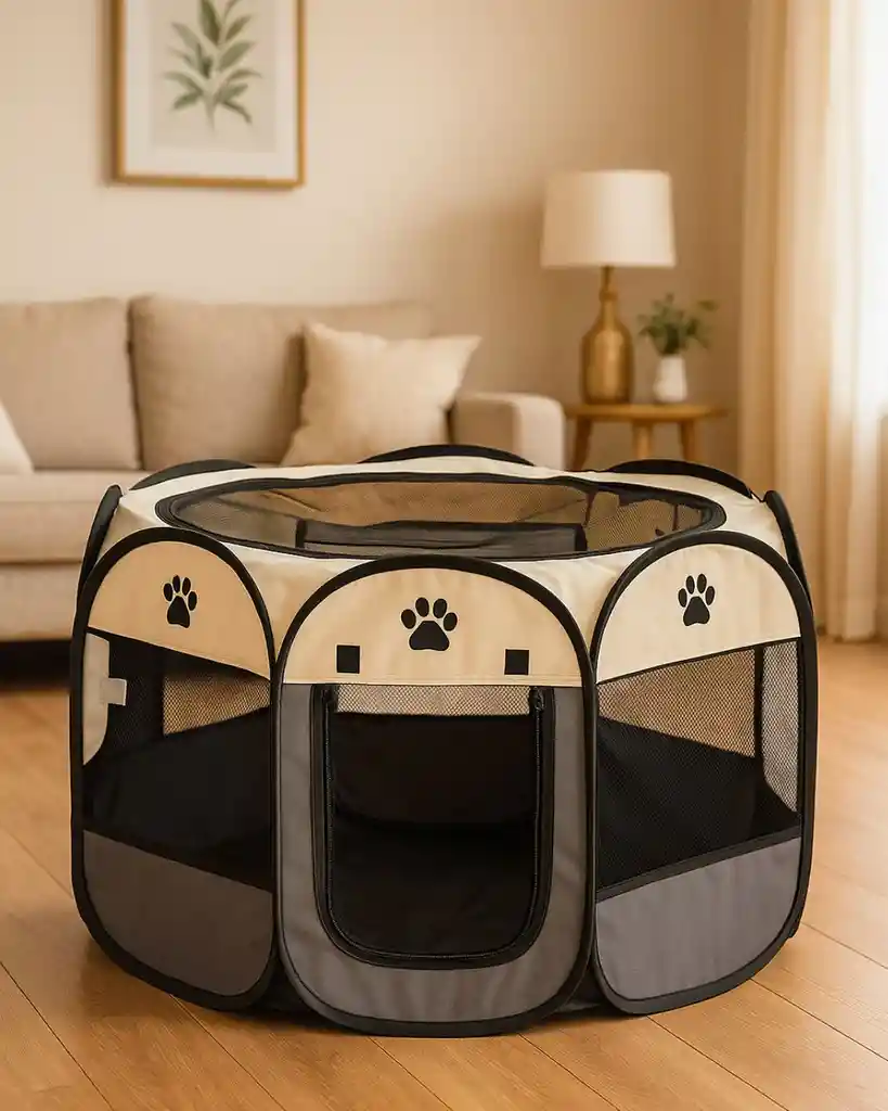 ¡Bienvenidos a VET MAK! El corral para perros talla S (74x74x43 cm) es el espacio perfecto para brindarle a tu mascota seguridad, comodidad y libertad en un mismo lugar. Su diseño práctico permite que tu peludo juegue, descanse y se mantenga protegido sin riesgos, ideal para interiores y exteriores. Gracias a sus materiales resistentes y su tamaño compacto, es fácil de armar, transportar y ubicar en cualquier espacio de tu hogar. Además, ofrece ventilación y visibilidad para que tu mascota siempre se sienta acompañada y tranquila. El corral talla S es la opción ideal para cachorros y perros pequeños, brindándoles un espacio seguro donde explorar y descansar con total confianza.