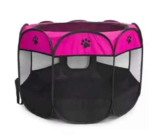 Producto: Corral desmontable octagonal para perro, gato y otras mascotas. . Elaborado con materiales textiles y estructura metálica plegable. . Mantiene a la mascota segura y cómoda durante el transporte. . Fácil de armar y desarmar. . Ligera y cómoda. . Materiales durables y resistentes al agua. . Totalmente lavable. • Se puede fijar al suelo por medio de estacas. • Cierre con cremallera en puerta y techo. • Malla para ventilación optima. • Bolso para guardar accesorios. DISPONIBLE COLOR ROSA CHICLE