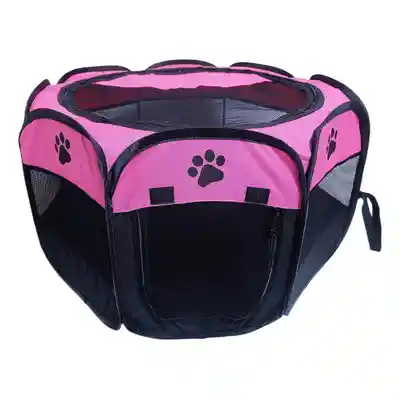 Corral plegable para mascotas. Ideal para mascotas pequeñas, cachorros y gatos. Tiene abertura lateral y arriba. Es plegable, fácil de transportar y liviano. Medidas: 48 cm alto x 66 diámetro. El color de la foto puede variar un poco con el tono real