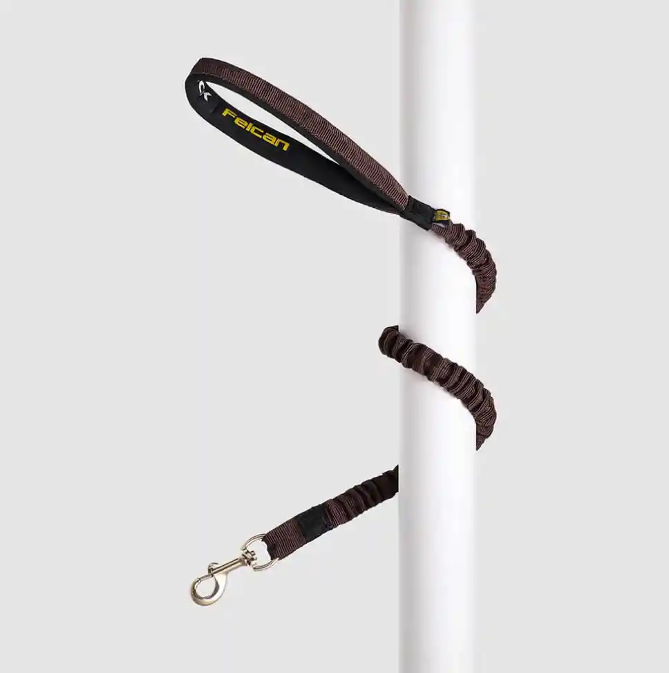 Anti-Shock Strap en cálido Café con absorción elástica que reduce tirones. Manija ergonómica cómoda y mosquetón giratorio de calidad. Su elegante color transmite calidez y sofisticación, ideal para perros de temperamento noble.