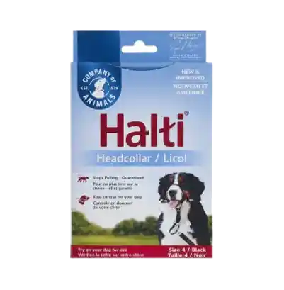 HALTI Headcollar evita que los perros tiren! Su diseño único y patentado funciona dirigiendo suavemente la cabeza y, por lo tanto, controlando la dirección del movimiento del perro, facilitando el entrenamiento y volviendo a tener el control. El HALTI Headcollar se ha convertido en el dispositivo de entrenamiento sin tracción favorito del mundo. Combina la máxima seguridad y control con un ajuste y comodidad sin igual para su perro. HALTI Headcollar fue inventado en 1979 por el conductista y activista de renombre mundial, el Dr. Roger Mugford, y está aprobado y recomendado por veterinarios, entrenadores y profesionales caninos de todo el mundo. El material suave y el diseño y la construcción cuidadosos aseguran que el HALTI Headcollar sea cómodo y en muchos perros puede crear un efecto calmante pronunciado. El HALTI Headcollar hace que el entrenamiento y la modificación del comportamiento de los perros sea práctico y seguro. Se puede usar de varias maneras: ya sea como un medio pasivo para simplemente evitar que los perros tiren, o como una ayuda activa para el entrenamiento. Millones se han vendido en todo el mundo. El HALTI Headcollar viene en seis tamaños para un ajuste óptimo para todas las razas y tamaños. -100 % lavables -TALLA 4: 45-62 cm MEDIDA DEL COLLAR : coloque la cinta métrica justo alrededor de la base del cuello del perro. Recuerda medir a tu mascota antes de hacer la compra.