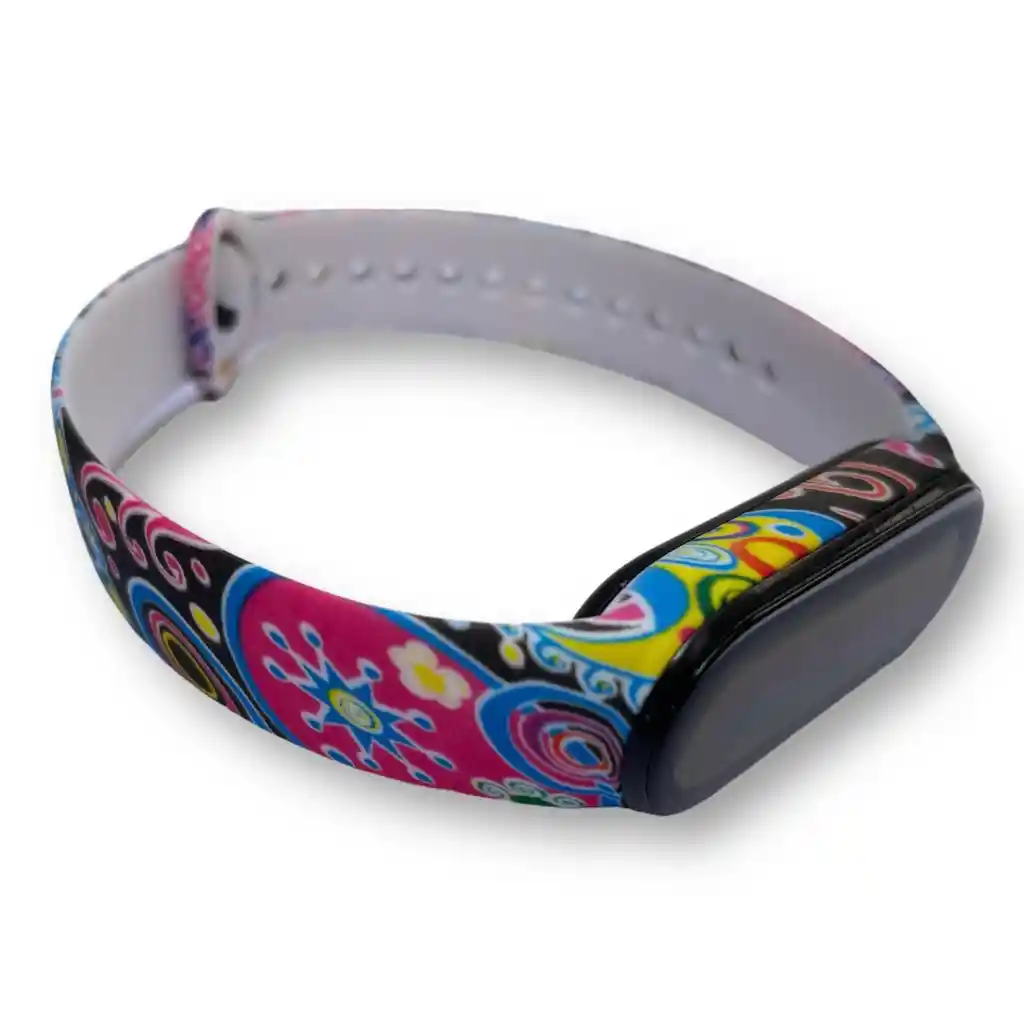 EL BAÚL DE MATIAS Correa De Silicona Estilo Grafiti Para Xiaomi Mi Band 3, 4, 5, 6, Pulsera Deportiva. La correa tiene varios niveles de ajuste para un diámetro mayor aproximado de 7 cms y el menor de 5 cms, ideal para niños y manos grandes también.