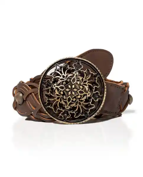 Talla M Para Mujer en Cuero 100% Piel Vacuno Con Diseño Trenzado Enriquecido Con Aplicaciones Metálicas en Acabado Pavonado Que Evocan Estética Artesanal Con Toque Sofisticado. Herraje Xl Calado de 93 mm de Alto Que Aporta Carácter y Acento Distintivo a la Silueta. Ideal Para Complementar Looks Bohemios Faldas Fluidas o Jeans de Tiro Alto Sumando Textura y Personalidad. Ean- 219G005Caf191111 Plu- 1111133221091.