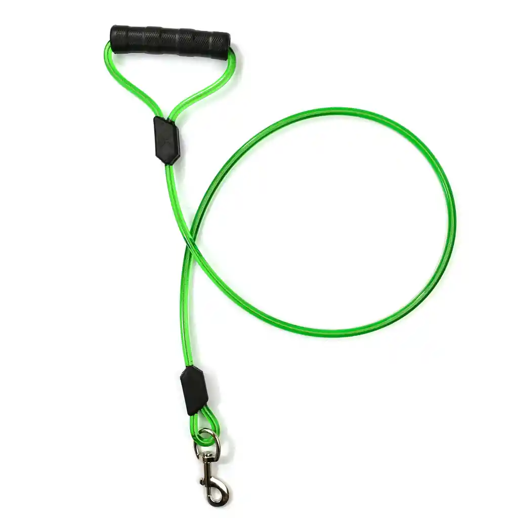 Correa Larga para Perros - su diseño cuenta con 120 cm longitud. Fabricada en Poliuretano reforzada con Cable de Acero. Cuenta con un gancho de seguridad giratorio grande de alta resistencia. No produce olor y es resistente al agua. hongos y bacterias. Es muy fa?cil de limpiar manualmente.