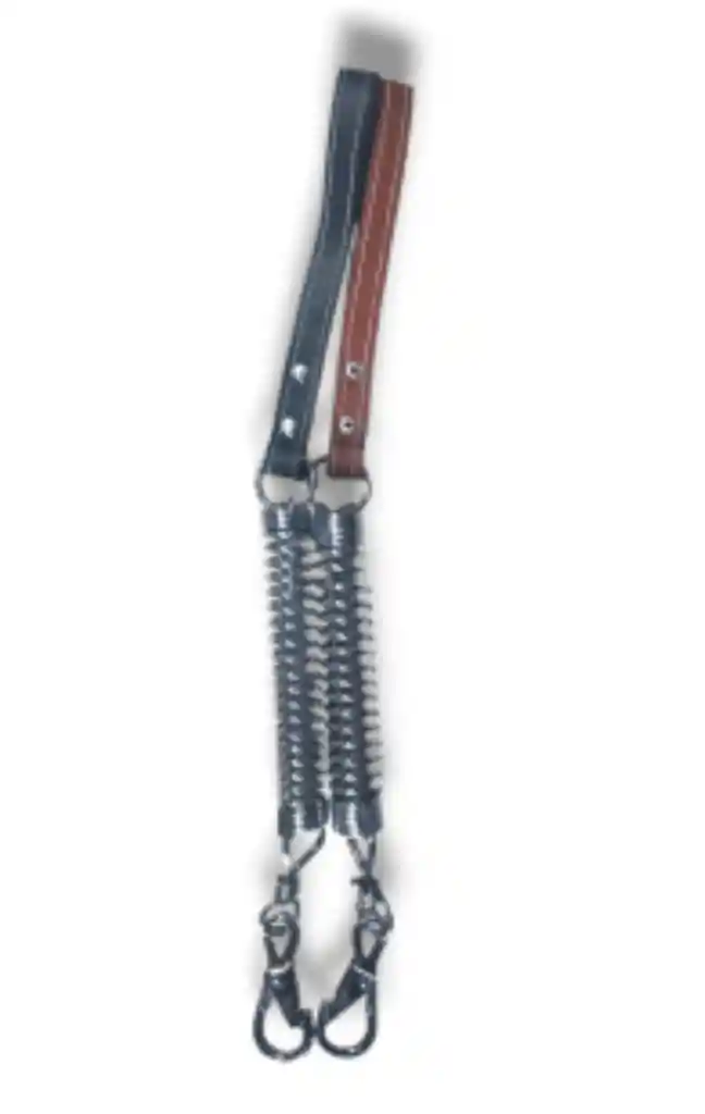 (Los lazos con resorte para mascotas, especialmente perros, sirven para amortiguar los tirones bruscos durante el paseo, proporcionando mayor comodidad y seguridad tanto para el dueño como para el animal. El resorte actúa como un amortiguador, reduciendo el impacto de los movimientos repentinos y previniendo lesiones).