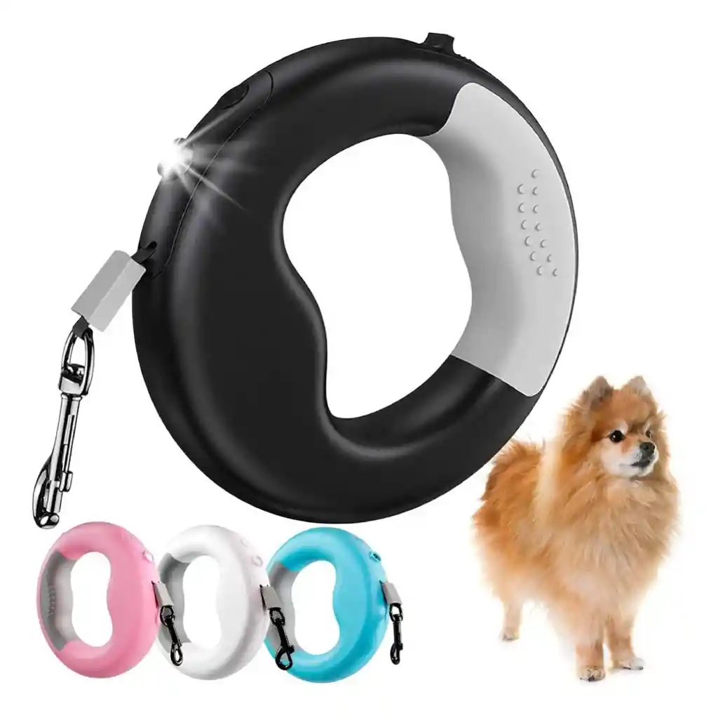 Correa retráctil: correa de paseo para mascotas de 3 metros para perros pequeños y medianos de hasta 44 libras de 360°, material ABS resistente a los impactos, resorte helicoidal interno de acero inoxidable para una retracción constante durante varios años. Fácil de operar: Freno y bloqueo con una sola mano, lo que permite que la correa del perro se ajuste a una longitud cómoda con facilidad, pasear a tu perro libremente en áreas abiertas con una sola mano, garantiza que tengas un control completo sobre la seguridad de tu perro. Correa para perro con linterna: luz LED de alta concentración, con un alcance de 3.5 Metros, te da la máxima visibilidad y seguridad mientras caminas por la noche. con puerto de carga USB, recargable. Mango ergonómico antideslizante de goma TPE suave en forma de arco para ayudarte a mantener cómodamente un fuerte agarre en perros que tiran y corren, además, puedes ponerlo en tu muñeca para liberar tus manos. Especificaciones: Material: nailon, ABS. Tamaño: 14 cm x 14 cm/5,51 pulgadas x 5,51 pulgadas, Longitud de la correa: 3 m Peso: 220g Peso Maximo Soportado: 44 Lbs El paquete incluye: 1* Correa de perro retráctil con luz LED 1* Cable de Carga USB-C