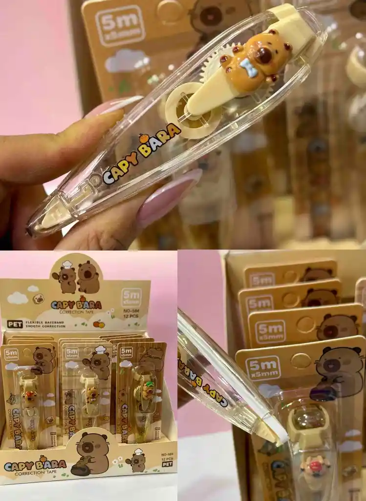 El Corrector Cinta Capibara 5 Metros es la herramienta perfecta para mantener tus escritos impecables y sin errores. Con una cinta de 5?metros de longitud, ofrece una solución duradera y práctica para corregir textos en papel, ya sea en la escuela, la oficina o el hogar. Diseñado para un uso fácil y preciso, este corrector cuenta con un mecanismo ergonómico que permite aplicar la cinta sin esfuerzo, garantizando una cobertura uniforme y sin residuos. Su tamaño compacto lo hace ideal para llevar en tu estuche o mochila, asegurando que siempre esté al alcance cuando lo necesites.