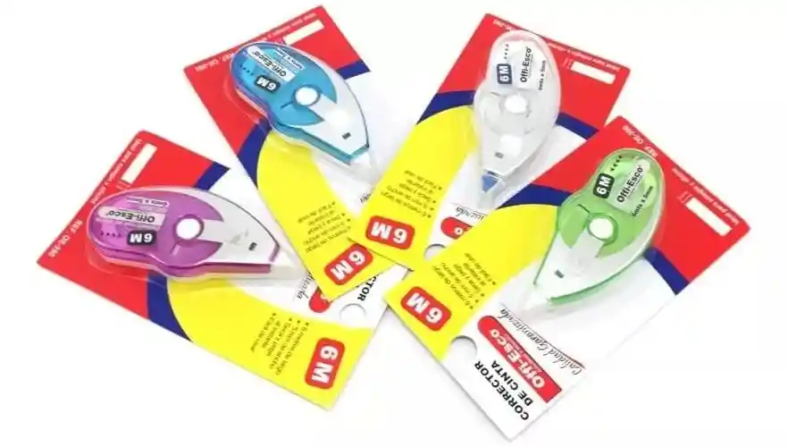 CINTA CORRECTOR OFFI ESCO -6 metros de largo -5 mm de ancho -Seca y pega al instante -Fácil de usar . Garantía Todos nuestros productos tienen 3 meses de garantía por defectos de fabricación. Tenemos envios con pago contraentrega en Bogotá, soacha, chia, usme pueblo, tiguaque, Engativa pueblo, calle 220, facatativa, rosal, zipaquira, tocancipa, cajica, mosquera, funza, Madrid, sopo, sibate, tengo, tabio, cota y calera. Despachamos a todo el país .