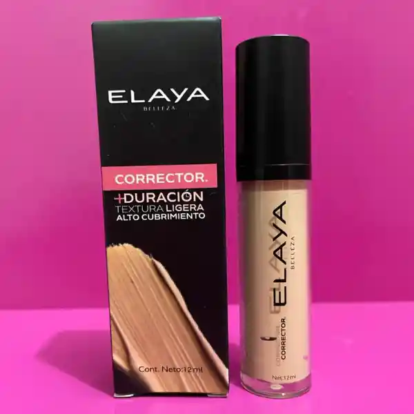 Corrector líquido Elaya / Tono 2 de alta cobertura, textura ligera y acabado natural que oculta las imperfecciones, disimula las ojeras y disminuye los signos de fatiga. Aplicación fácil y rápida.