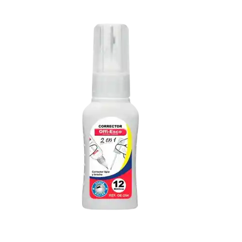 Corrector liquido 2 en 1 x 15 ml Offi esco, Corrector 2 en 1, punta de lápiz y brocha, Su punta de aguja de precisión asegura correcciones precisas