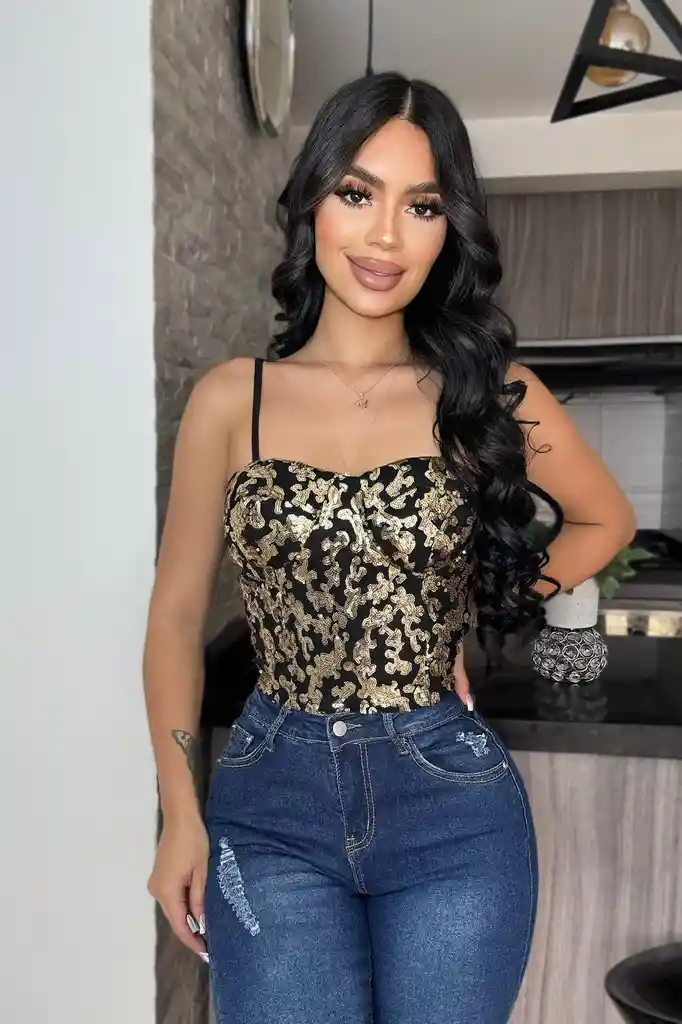 Corset Negro con Lentejuelas Dorada ✨ Talla Única | Ajuste de S a L Realza la figura con un diseño elegante y sofisticado. Ideal para ocasiones especiales o looks sensuales con estilo.