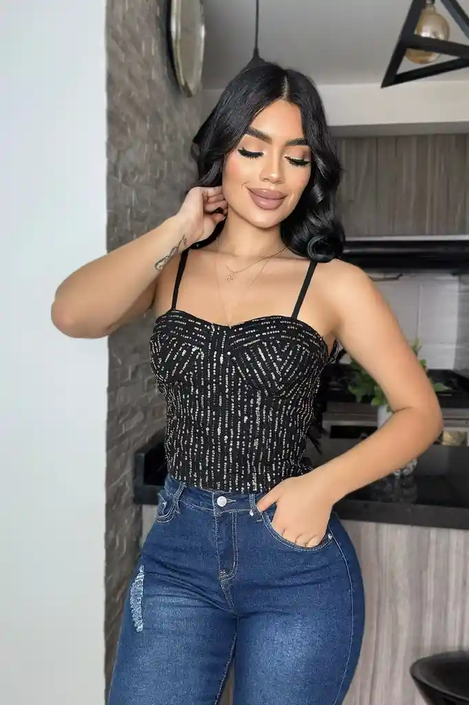 Corse Negro Lentejuela Dorada ✨ Talla Única | Ajuste de S a L Realza la figura con un diseño elegante y sofisticado. Ideal para ocasiones especiales o looks sensuales con estilo.