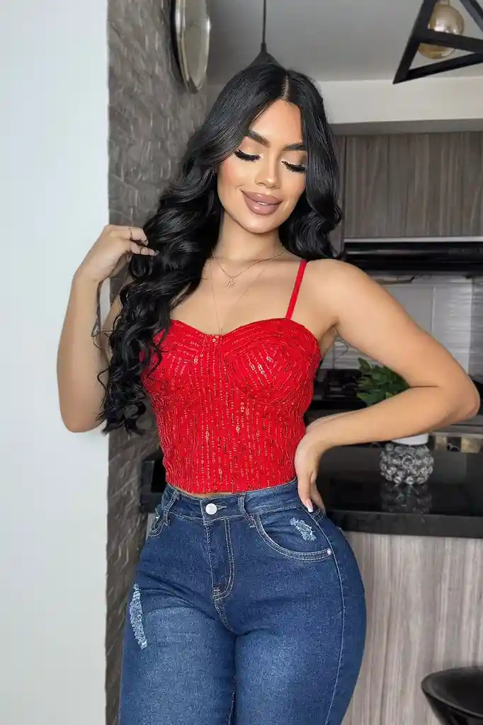 Corset rojo en lentejuelas✨ Talla Única | Ajuste de S a L Realza la figura con un diseño elegante y sofisticado. Ideal para ocasiones especiales o looks sensuales con estilo.