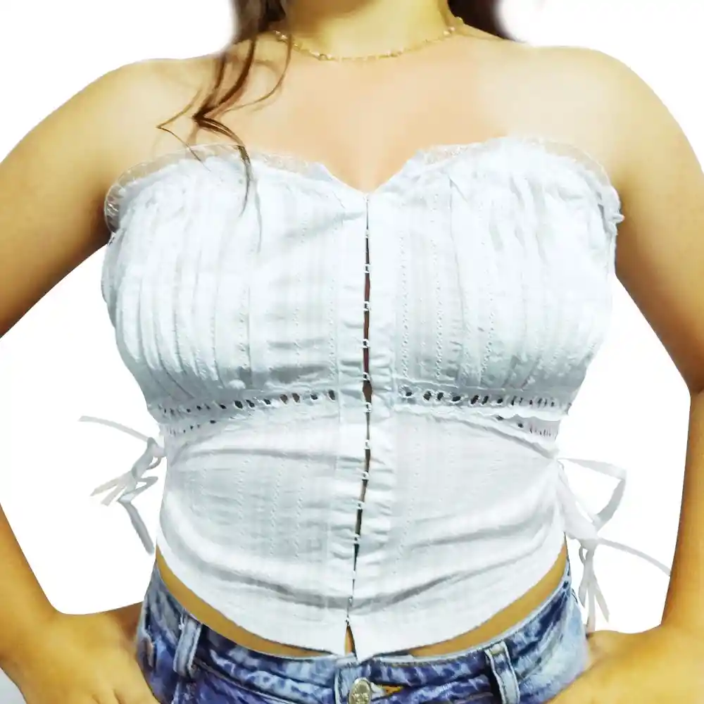 CORSET BLANCO FEMENINO CON ENCAJE Hermoso diseño de corset femenino Talla única para mujeres que les gusta las prendas delicadas que las hacen ver muy femeninas y bellas. Con cinta ajustable en los laterales y broches en el centro para moldearse mejor a tu cuerpo. Material Principal: Ojalillo. Talla Única. Marca: Versi