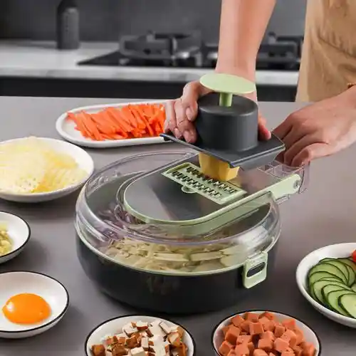 Descubre la versatilidad del Cortador 9 En 1 Multiusos Rallador Picador Triturador, una herramienta esencial para cualquier cocina. Con un diseño funcional y práctico, este producto cuenta con nueve funciones que te permitirán rallar, picar y triturar una amplia variedad de ingredientes, facilitando la preparación de tus platillos favoritos. Fabricado con un cuerpo de plástico resistente y cuchillas de acero inoxidable, garantiza durabilidad y un rendimiento excepcional. Las cuchillas intercambiables te ofrecen la flexibilidad de elegir la opción más adecuada para cada tarea, optimizando tu tiempo en la cocina.
