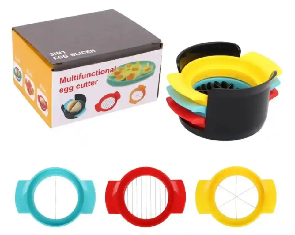 Cortador De Huevos Cuchillas Acero Inoxidable Multifunción 3 En 1 CARACTERISTICAS: * Función 3 en 1: el cortador de huevos tiene tres facetas de acero inoxidable, que pueden cortar los huevos por la mitad, cortar las flores y cortarlas en rodajas finas para satisfacer sus diferentes necesidades. Las rodajas se pueden apilar para ahorrar espacio * Materiales de alta calidad: el cortador de huevos está hecho de alambre de acero inoxidable y material PP, que tiene las características de resistencia a la corrosión, caída y presión. * Múltiples usos: el cortador de huevos es ideal para cortar huevos cocidos. También se puede utilizar para ensaladas cocidas o aperitivos a base de huevos. Incluso puede cortar fresas, kiwis, champiñones y queso. * Diseño único: el diseño de la ranura de la base del divisor de huevos es más consistente con la forma del huevo, y las superficies cortadas de diferentes colores se combinan en un arco iris, que es muy adecuado para decorar la cocina y es una herramienta indispensable para la cocina en casa DESDCRIPCION: - Este producto es una cortadora de huevos multifuncional diseñada para cortar huevos duros de manera rápida y uniforme. Incluye diferentes utensilios para cortar huevos en rodajas, cuñas o mitades. - Fabricado con alambres de acero inoxidable para facilitar el corte. Versatilidad, También puede utilizarse para cortar frutas blandas como fresas u frutas blandas. perfecto para preparar ensaladas o aperitivos de forma rápida. ESPECIFICACIONES: * Material: Plástico/ Acero Inoxidable. * Dimensiones: Ancho: 10 X Largo: 9 x Alto:6 cm.