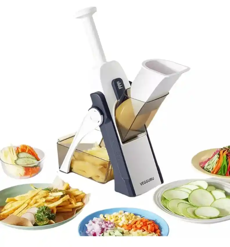 "REBANADOR DE VERDURAS Y FRUTAS MULTIFUNCIONAL 5 EN 1 Descubre un aliado imprescindible que hace que preparar tus recetas favoritas sea más rápido, seguro y preciso. Con 5 opciones de corte versátiles, podrás adaptarte a cualquier preparación y sorprender con cada platillo: MULTIUSOS - JULIANA: Perfecta para crear finas tiras ideales en ensaladas o para decorar. - CUBOS GRANDES Y PEQUEÑOS: Cortes precisos que facilitan la preparación de guisos, sopas, y salsas frescas. - REBANADAS DELGADAS Y GRUESAS: Desde chips crujientes hasta cortes para hornear, encuentra el grosor exacto en cada rebanada. - PALILLO: Ideal para crudités, acompañamientos y snacks saludables que lucen tan bien como saben. DISEÑO SEGURO Y ANTIDESLIZANT Con un sistema que previene cualquier contacto con las cuchillas, puedes trabajar con tranquilidad y mantener tus dedos a salvo mientras cocinas. FÁCIL DE LIMPIAR Y PLEGABLE Mantén tu cocina organizada y olvídate del desorden. Este rebanador es sencillo de desmontar y se pliega fácilmente, ocupando el mínimo espacio cuando no lo necesitas. AJUSTÉ DE GROSOR PERSONALIZADO El control de grosor ajustable permite que tus cortes sean tan finos o gruesos como desees, haciendo de cada preparación un plato único."