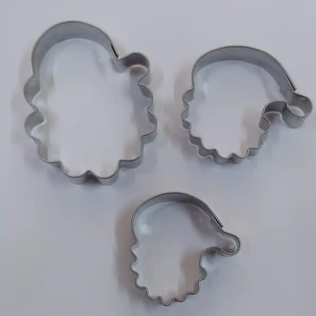 Juego de 3 cortadores con diseño de navidad ideal para galletas y demás preparaciones en panadería y repostería. Dimensiones 5, 6 y 7cm