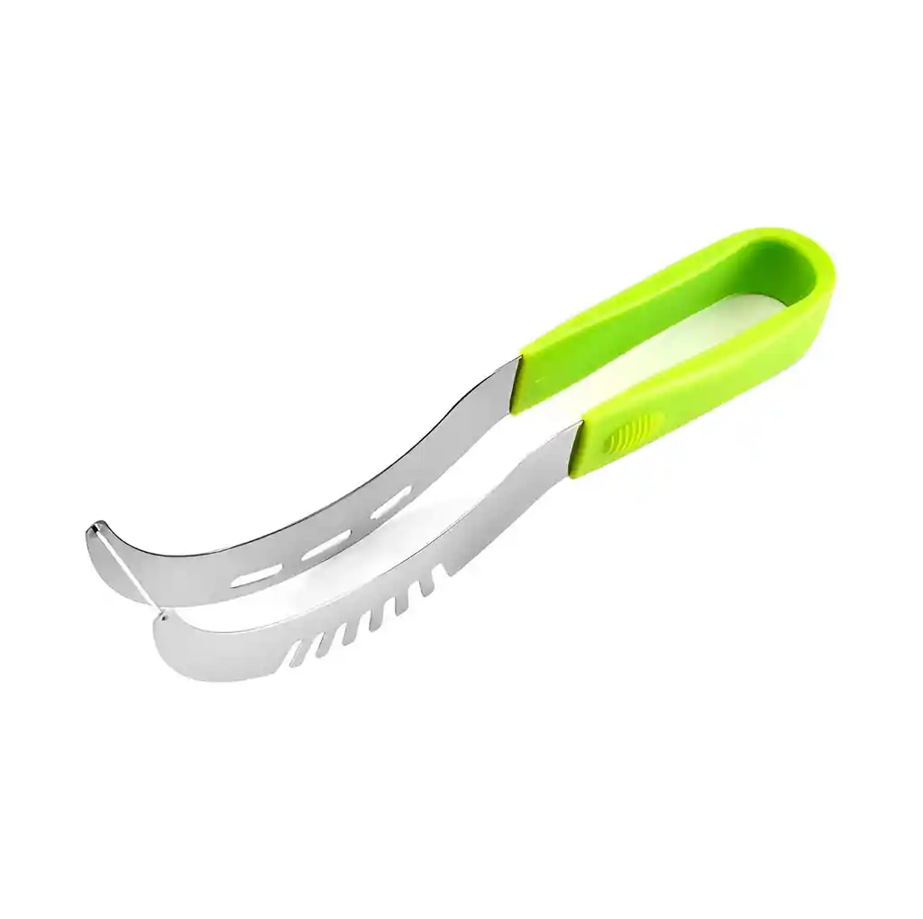 Optimiza tu tiempo en la cocina con este innovador cortador y servidor de sandía, diseñado para rebanar y extraer porciones perfectas de forma rápida, limpia y segura. Su estructura de acero inoxidable cuenta con una hoja de arco de doble cara altamente afilada y un diseño dentado que facilita el corte preciso, mientras que su función de pinza permite sujetar y servir las rebanadas directamente al plato sin ensuciar las manos. Es una herramienta versátil y duradera, ideal no solo para sandías, sino también para melones, papayas y otras frutas similares, convirtiéndose en el accesorio indispensable para tus reuniones y comidas saludables. FICHA TÉCNICA Producto: Cortador y pinza para sandía Material de la hoja: Acero inoxidable de alta calidad Material del mango: Plástico PP ergonómico Longitud total: 25 cm (9.85 pulgadas) Ancho del mango: 2.8 cm (1.1 pulgadas) Ancho de la hoja: 2.8 cm (1.1 pulgadas) Características: Hoja de arco con borde dentado para mayor fricción y corte eficiente Diseño del mango: Ranura humanizada para un agarre estable y firme Uso: Multifuncional para sandía, melón, papaya y más POLÍTICAS DE GARANTÍA Garantía de 30 días calendario por defectos de fábrica a partir de la entrega. La garantía no cubre daños por uso indebido, como intentar cortar alimentos excesivamente duros que no sean frutas, ni el desgaste natural del filo por el uso prolongado. Para hacer efectiva la reclamación, el producto debe devolverse limpio y en su empaque original. Los costos de envío para trámites de garantía serán gestionados según las políticas de la plataforma.